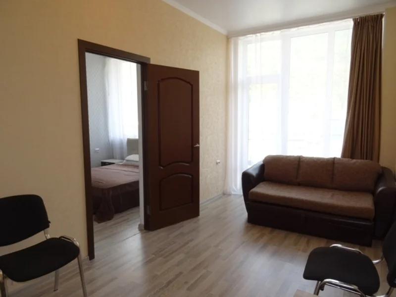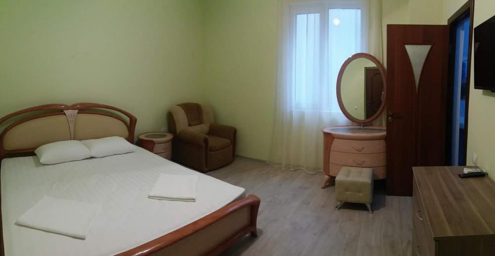 В комплектации номера ванная комната с душем, спальня с двуспальной кроватью и диваном. Среди удобств беспроводной интернет, телевизор, кондиционер, фен (по запросу), туалетные принадлежности.